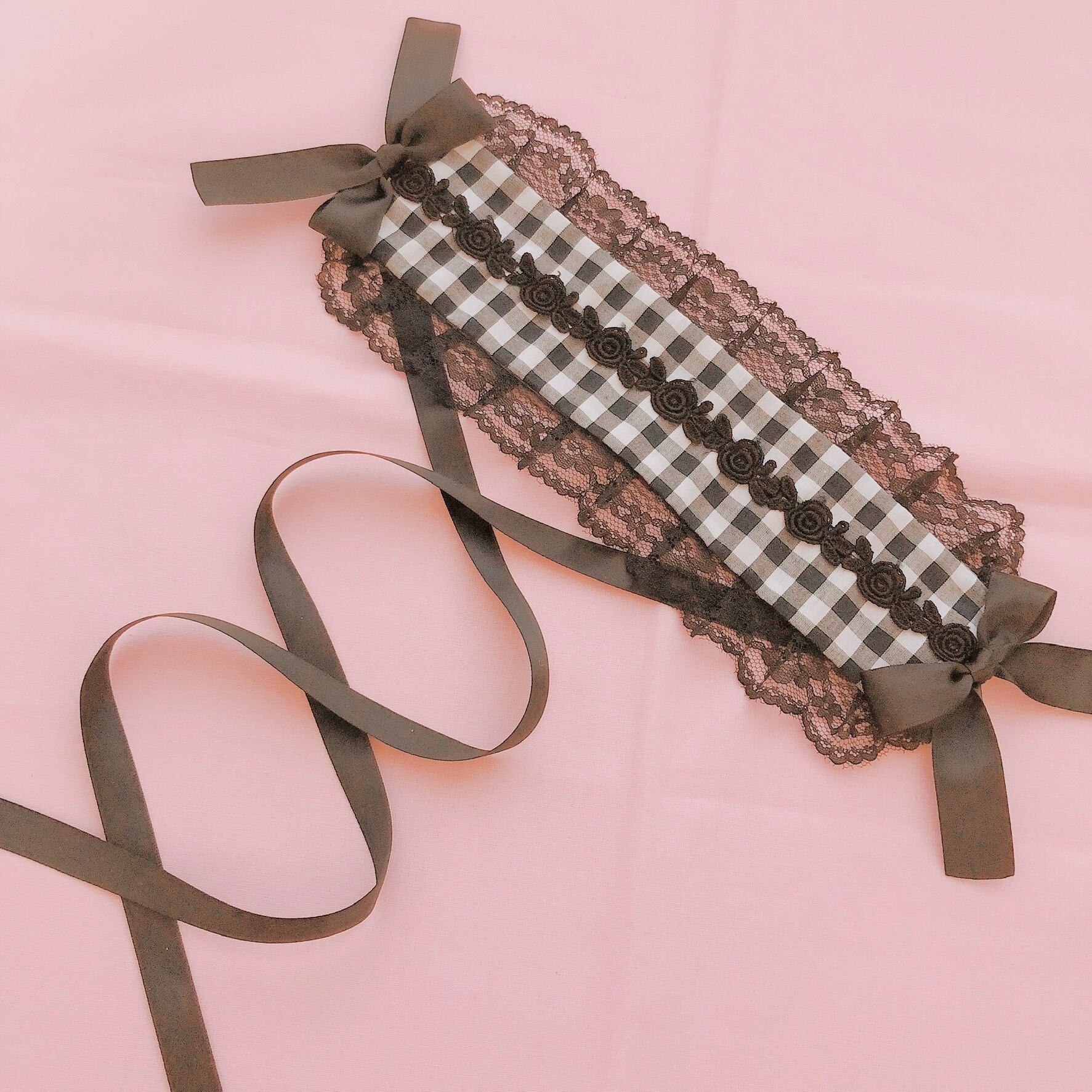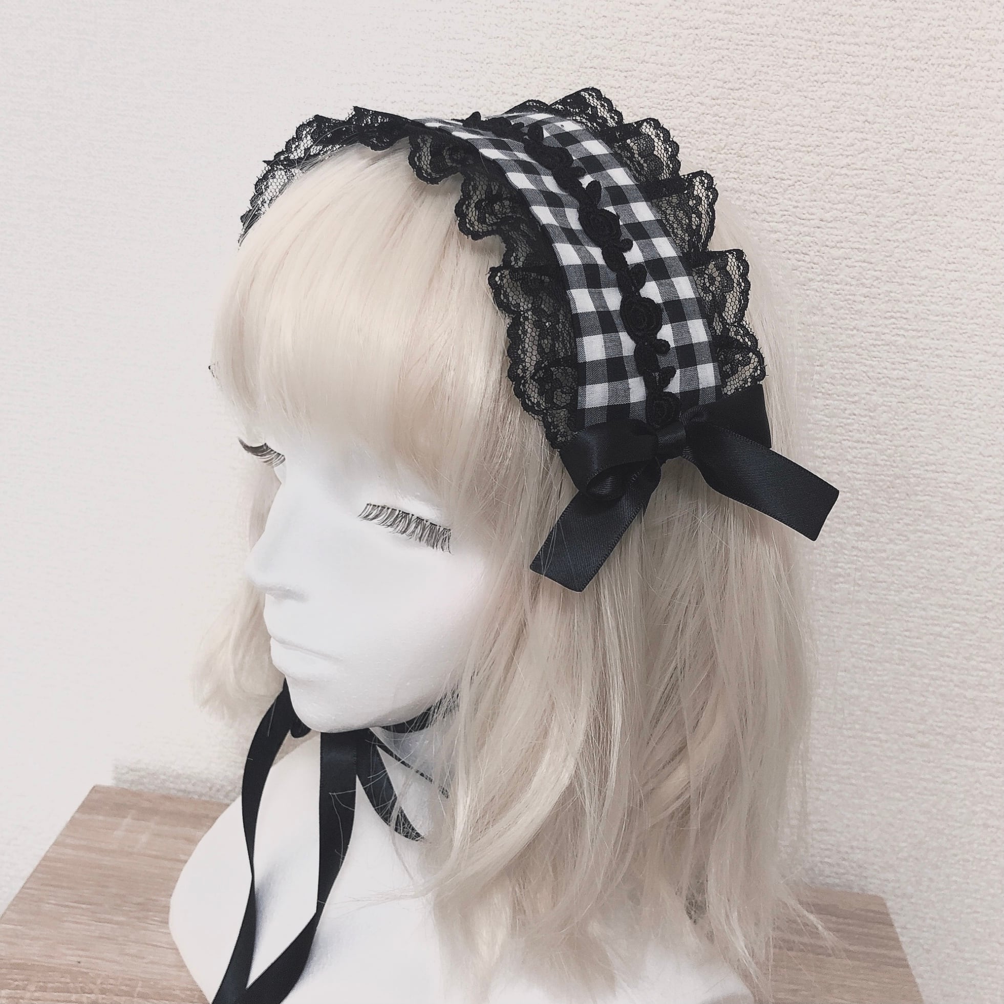 黒白ギンガム薔薇レースヘッドドレス ロリータ 量産型 地雷系 ゴスロリ