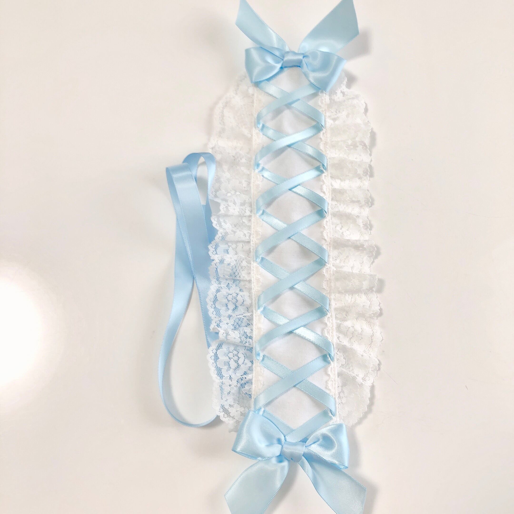 白×水色 レースアップリボンヘッドドレス ロリータ コンカフェ メイド