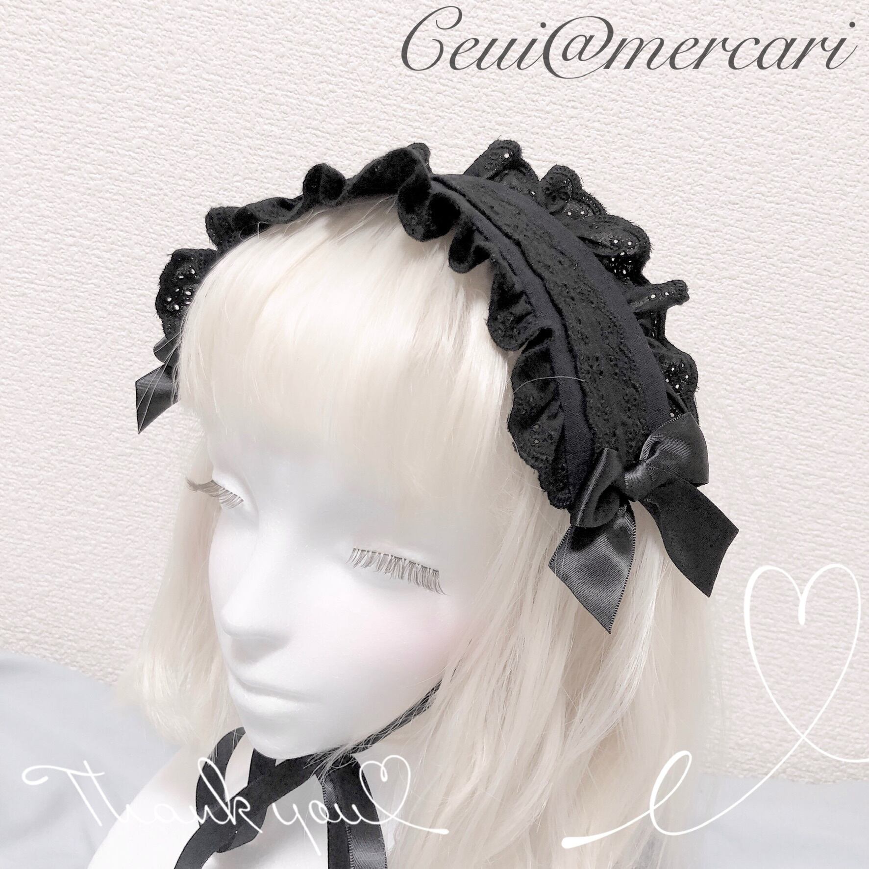 黒コットンレースヘッドドレス ロリータ 量産型 地雷系