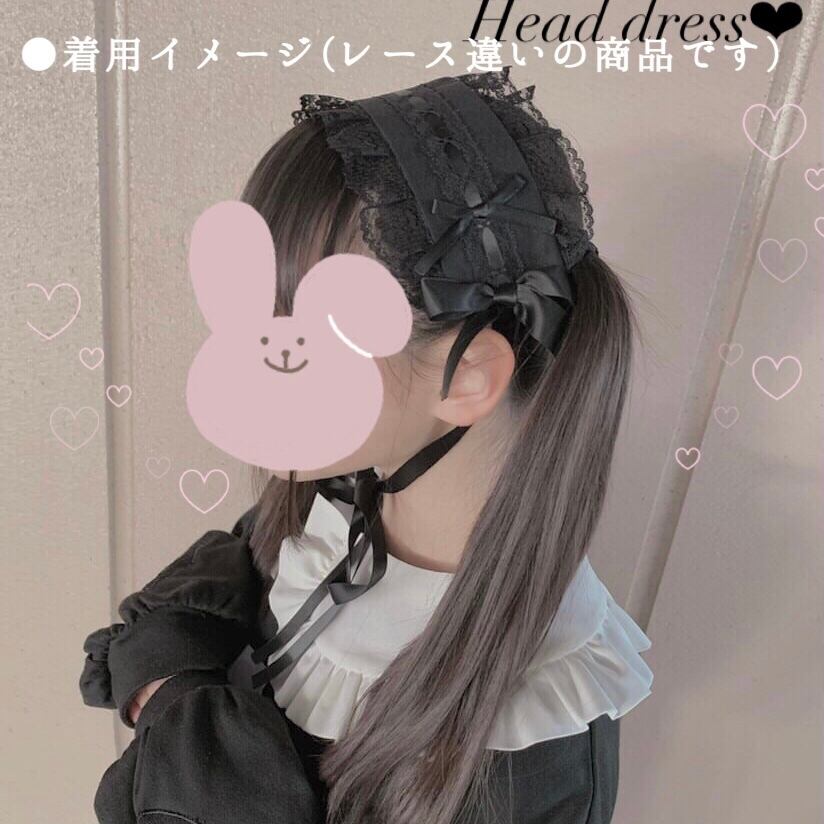 黒梯子レースダブルリボンヘッドドレス ロリータ 量産型 コンカフェ