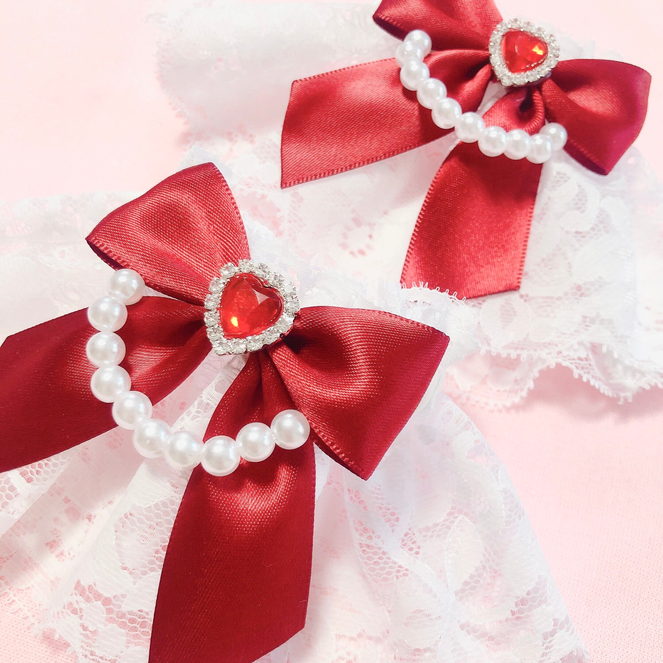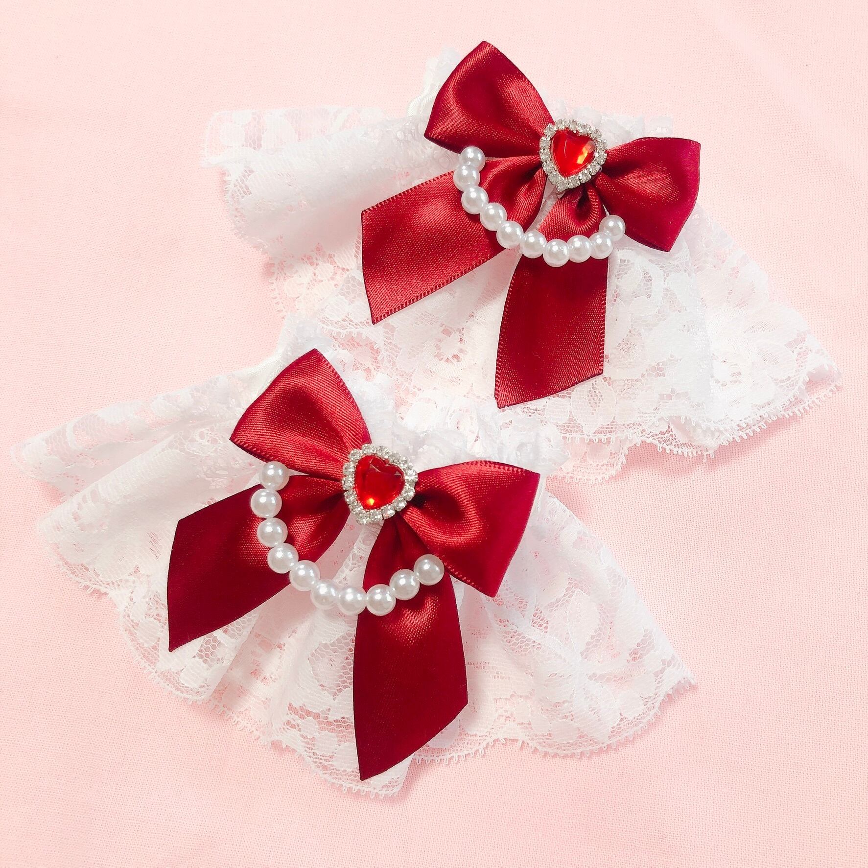 量産型 量産型オタク ゴシック ゴスロリ メンヘラ コスプレ コンカフェ メイド メイド服 コンカフェ 姫系 地雷 ジャニオタ アイドル 歌い手 参戦服 ライブ イベント 病みかわいい 闇かわいい ゆめかわいい リボン ハート ストーン ビジュー クラシカルロリータ ロリィタ 甘ロリ クラロリ お袖とめ お袖どめ カフス レースカフス ブレスレット ブレス 赤担当